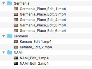 Export each version of your project into the Exports folder, and keep a consistent naming system. Such as: Client_E1, Client_E2,_Client_E3 and so on. If you have multiple videos from the same client, please make sub folders for each video.